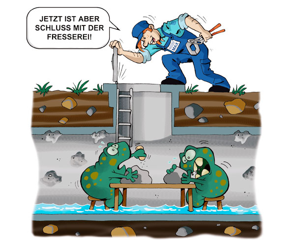Fachbegriffe aus der Wasserwirtschaft karikaturistisch erklärt.
